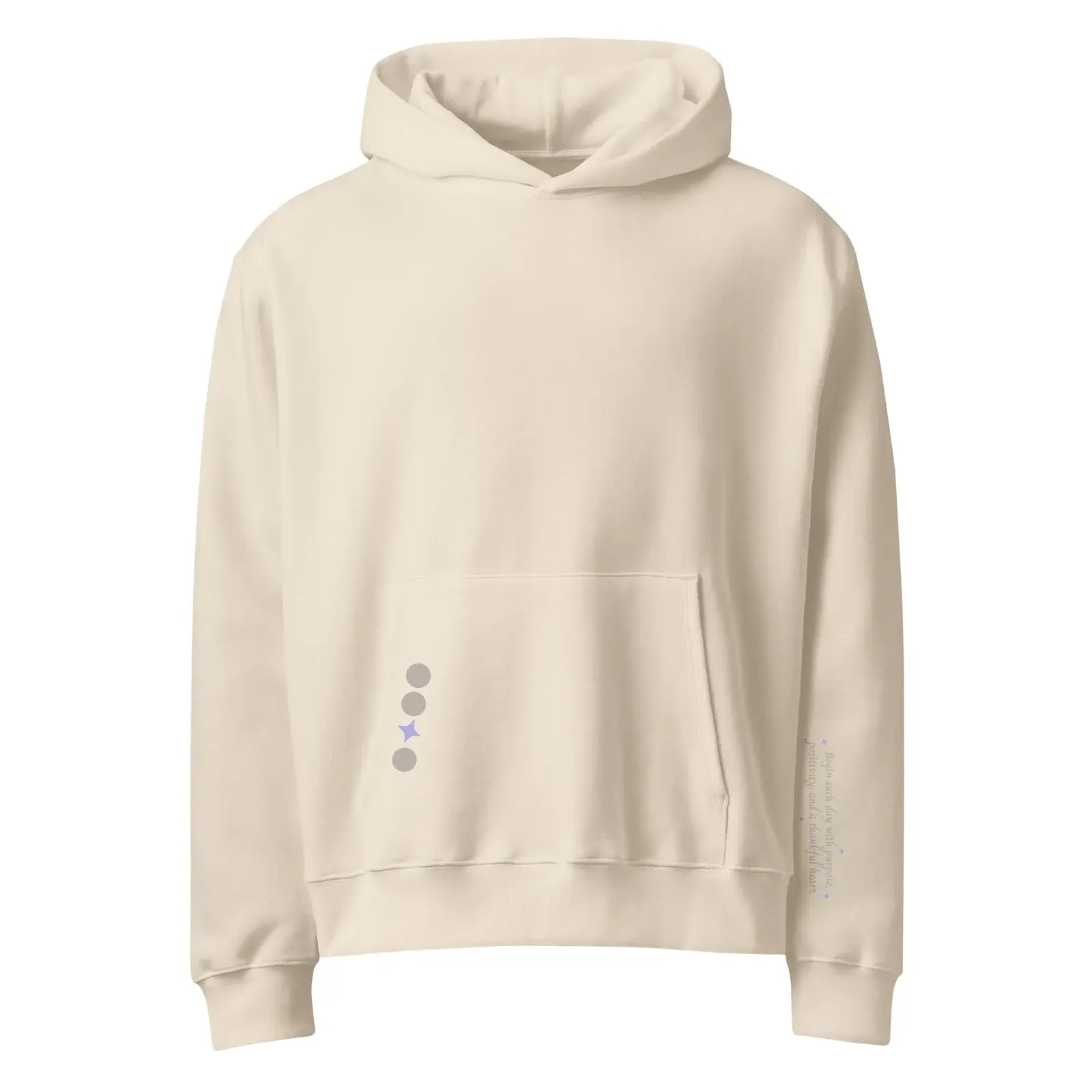 This Dust Hoodie with Taupe Sunrise style honors how the transformative power of mindful intention, positivity, and gratitude can shape each day and your outlook on life. It features the affirmation, ‘Begin each day with purpose, positivity, and a thankful heart,’ complemented by iShine’s sunrise mosaic graphic on the back.