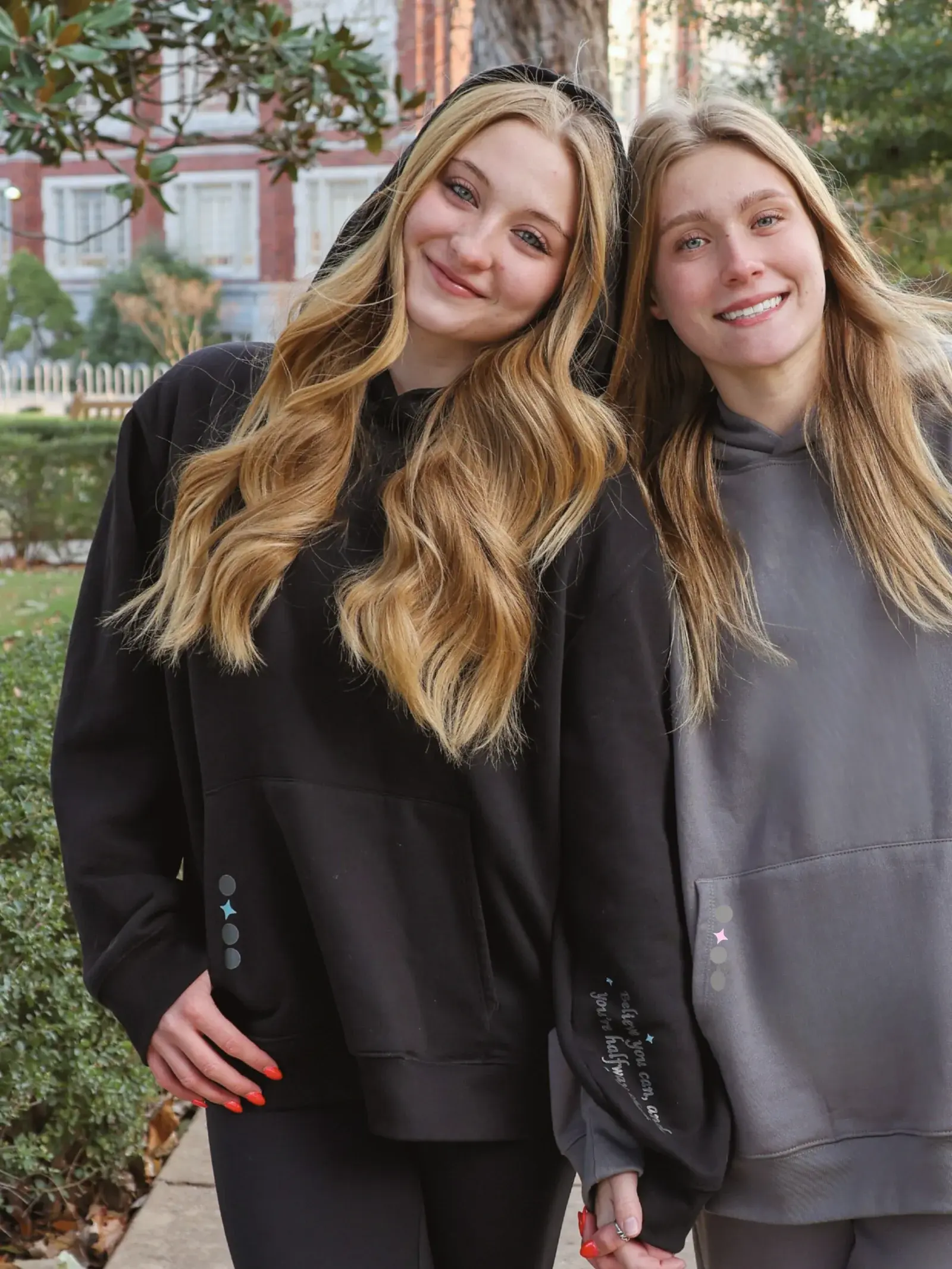 In the spirit of iShine’s Made to Inspire credo, a subtly placed affirmation runs along the inner arm of the hoodie as gentle encouragement to be your best self. Our hoodie affirmations champion the character values we hold close—authenticity, compassion, courage, gratitude, and resilience.
