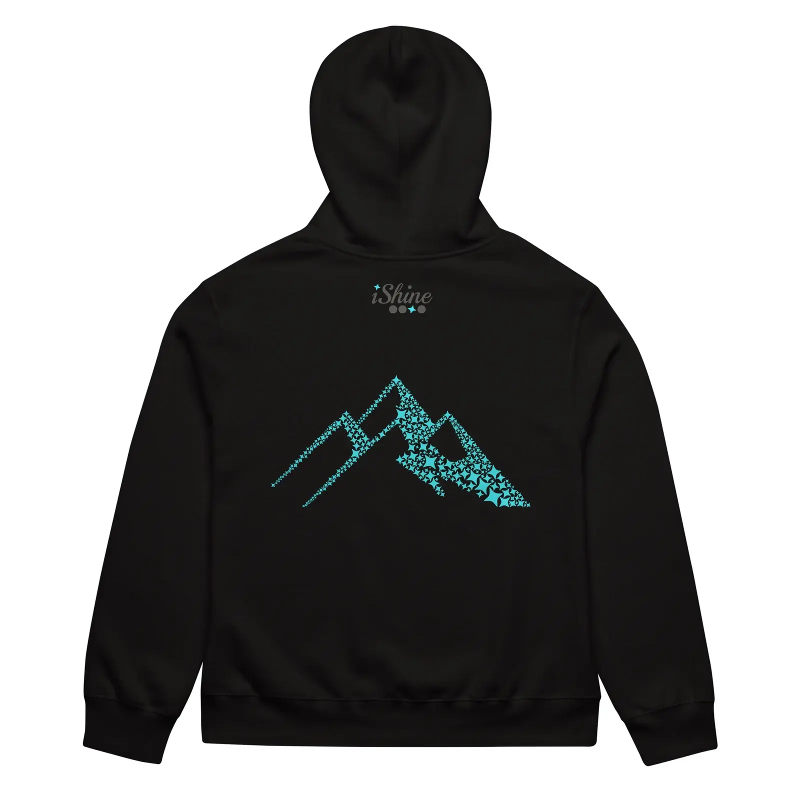 This Black Hoodie with Aqua Mountain style honors the power of resilience and belief in your own abilities and potential. It features the affirmation, ‘Believe you can, and you’re halfway there,’ paired with iShine’s mountain mosaic graphic on the back.