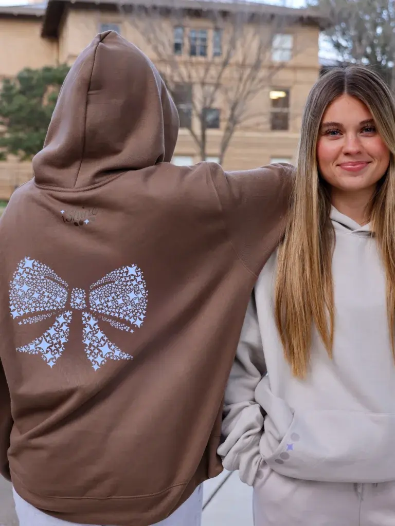 This Vintage Brown Hoodie with Sky Blue Bow style is intended to remind you that meaningful beauty is rooted in your character, your authenticity, and your self-confidence. It features the affirmation, ‘Confidence is my best accessory,’ complemented by iShine’s bow mosaic graphic on the back.