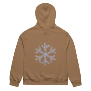 Heavyweight Vintage Brown Hoodie with Sky Blue Snowflake