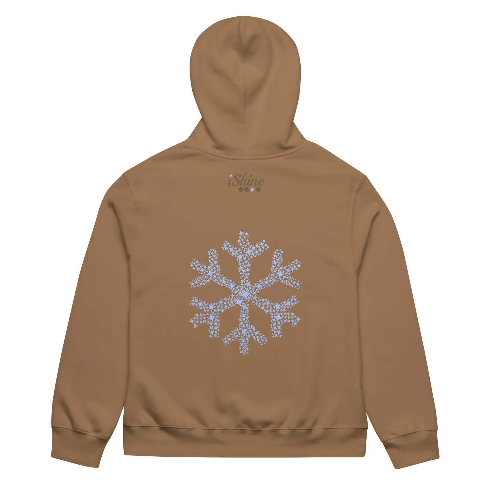 This Vintage Brown Hoodie with Sky Blue Snowflake style celebrates the beauty and strength of being a one-of-a-kind individual by featuring the affirmation, ‘Being yourself is the bravest thing you can be,’ complemented by iShine’s snowflake mosaic graphic on the back.